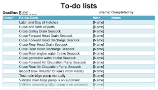 For times when the cats will be on board, we have the following checklist we follow that has two sections, The first thing we do is complete all of the items below which are completed below decks (and in some cases below floors)